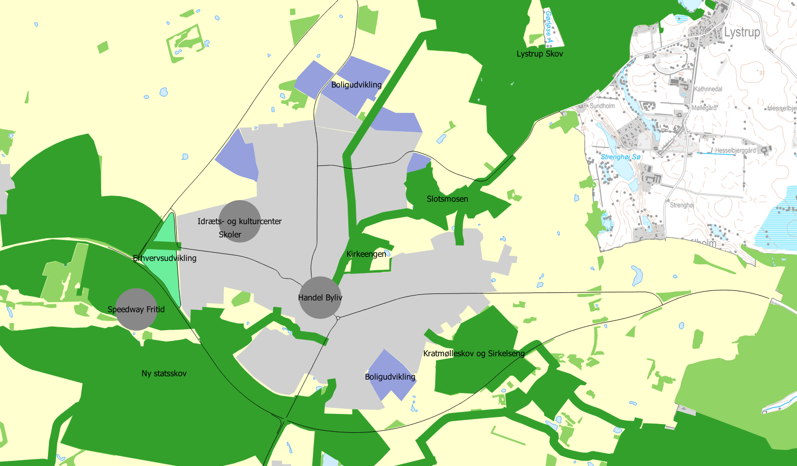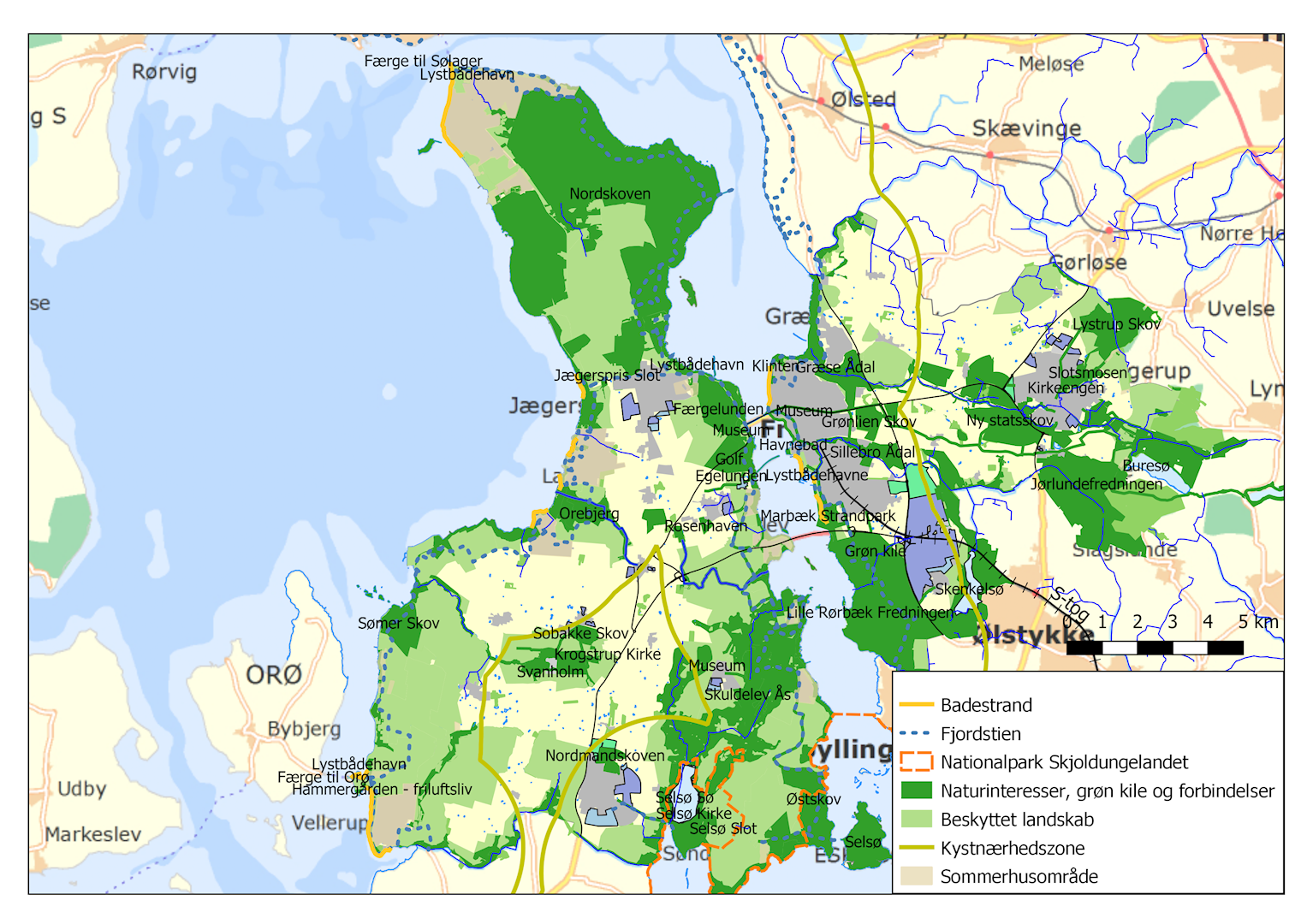 Byen har en unik tilgængelighed til det store naturområde Nordskoven, men også til Færgelunden, til fjorden ved Kignæs Havn, til Vester Strand og et attraktivt og unikt kulturmiljø omkring Slottet. I den videre byudvikling skal disse vigtige grønne træk i byen fastholdes og der skal sikres tilgængelighed til dem fra såvel gamle som nye byområder.