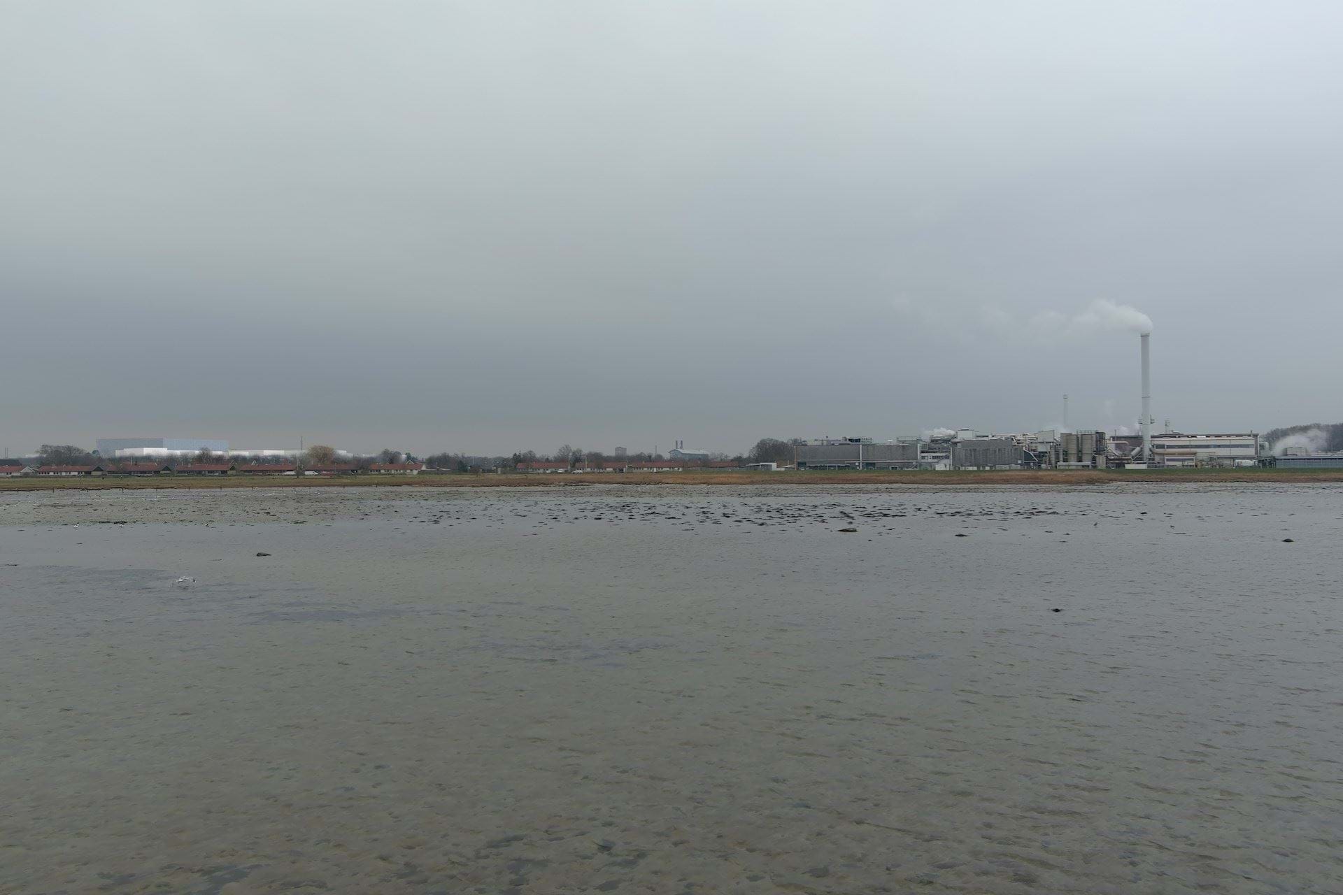 Virksomheden Topsoe er også dominerende for kystlinjen set fra bugten. Topsoes bebyggelse er varierede i højde men op mod 18 meter. Bebyggelsen er store voluminer med fladt tag i hvide og grå nuancer. I samspil med Topsoe vurderes bebyggelsen i 15 og 25 meter i erhvervsområdet at være mindre dominerende for kystlandskabet ift. volumen og højden, men er ikke en uvæsentlig ændring.