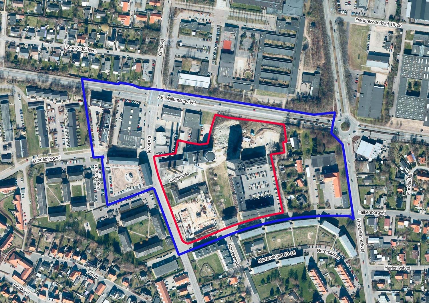 Oversigtskort 1: Viser det nye rammeområde BB 1.9 (rød) og det ændrede rammeområde BB 1.3 (Blå)