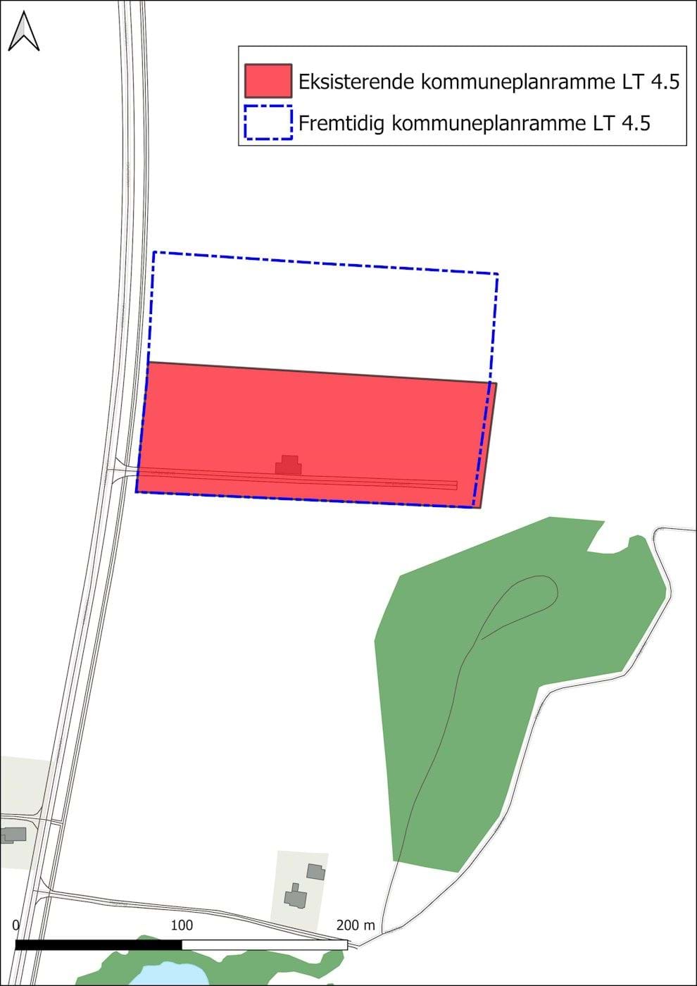 Kommuneplantillægget ændrer på det eksisterende rammeområde LT 4.5. LT 4.5 udgør i dag ca. 1,6 ha. LT 4.5 udlægger området til tekniske anlæg i form af forsyningsanlæg, såsom højspændingsstation, driftbygninger samt jordbrugsformål.